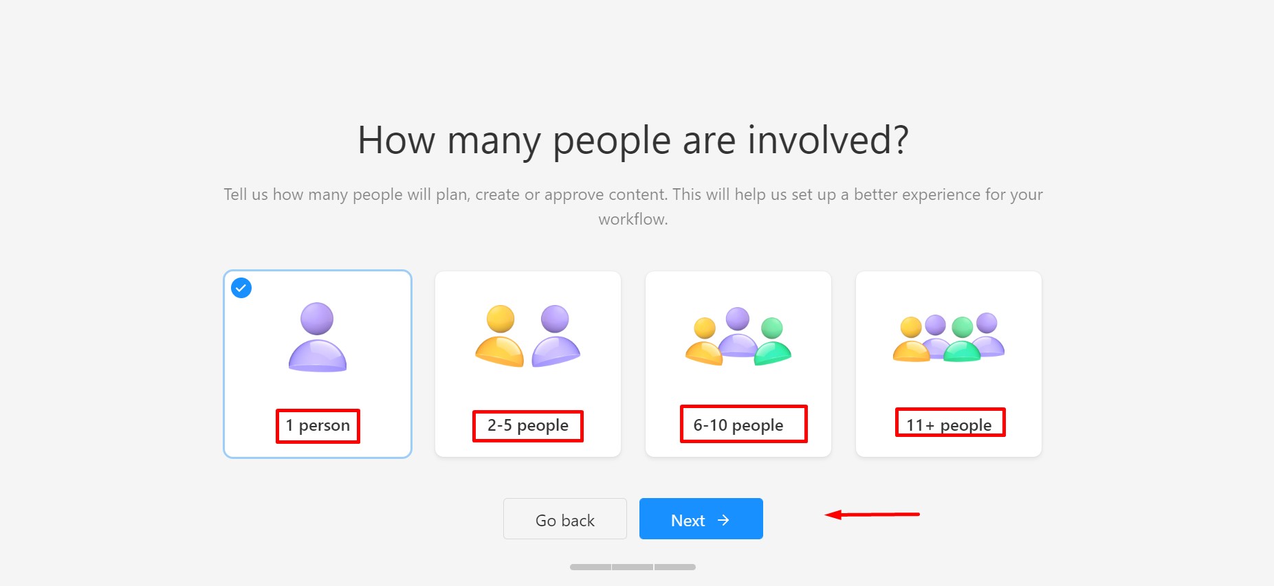 For a better-optimized work experience with Planable, describe your setup on the next screen(check the below image)
